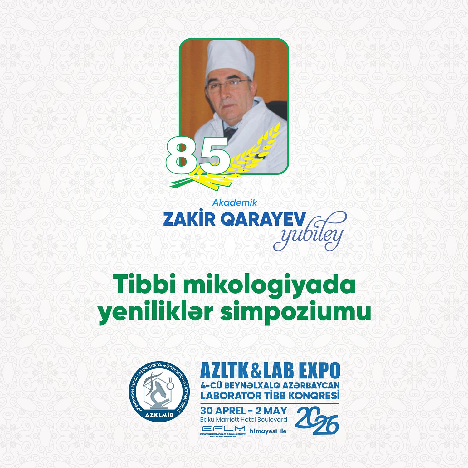AZLTK & LAB EXPO 2026 çərçivəsində EFLM tərəfindən təşkil olunacaq yüksək səviyyəli beynəlxalq Simpoziumunun Elmi Proqramında müxtəlif Avropa ölkələrindən olan dünya şöhrətli alimlər mühazirələr təqdim edəcəklər. Bu proqram Avropanın ən aparıcı alimlərinin iştirakı ilə yüksək səviyyəli elmi fikir mübadiləsi üçün unikal imkan yaradacaq.